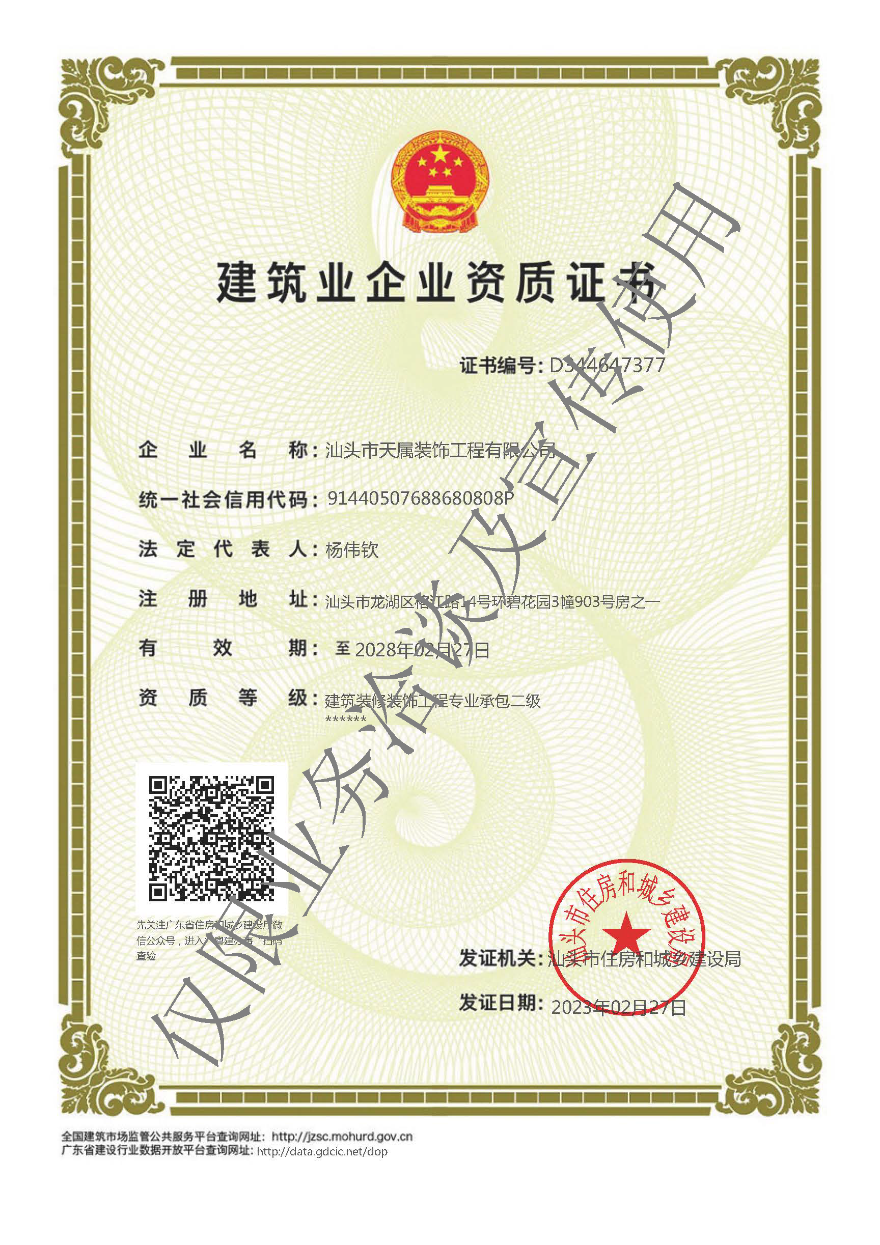 建筑装修装饰工程专业承包二级资质,建筑装饰设计专项丙级资质证书